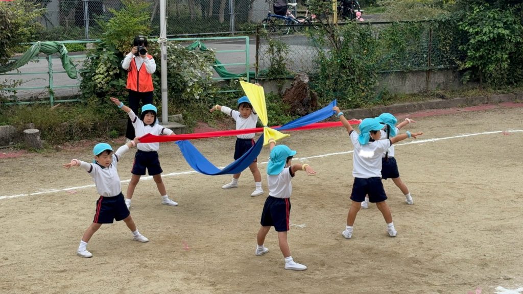 年長さん:旗や組体操、リレー、鼓笛を頑張りました♪